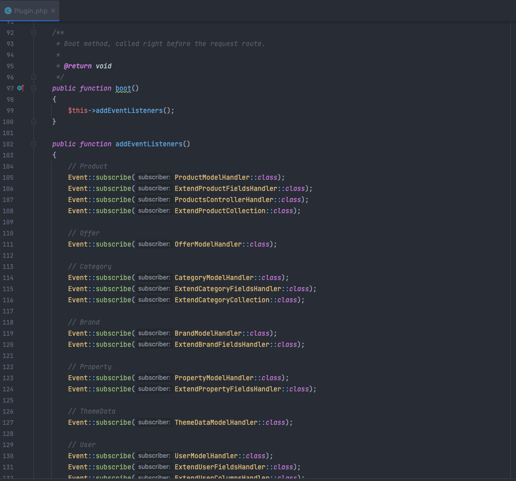 Writing Event listeners in this way helps a lot if your app continues to grow from time to time, Plugin.php stays clean and plugin folder are organized and easy to navigate.