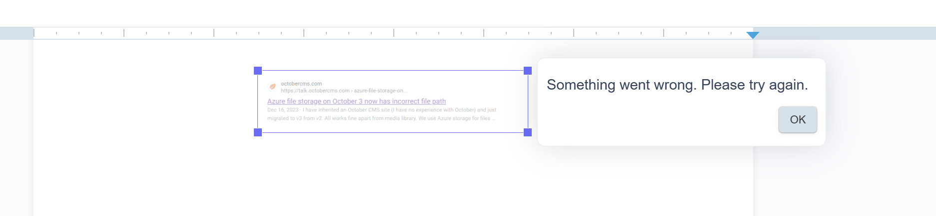 However, when I try to edit a blog post in the editor and attach an image, an error occurs.