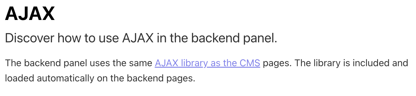 found here AJAX - October CMS - 4.x, the link to AJAX library as the CMS goes to error 404