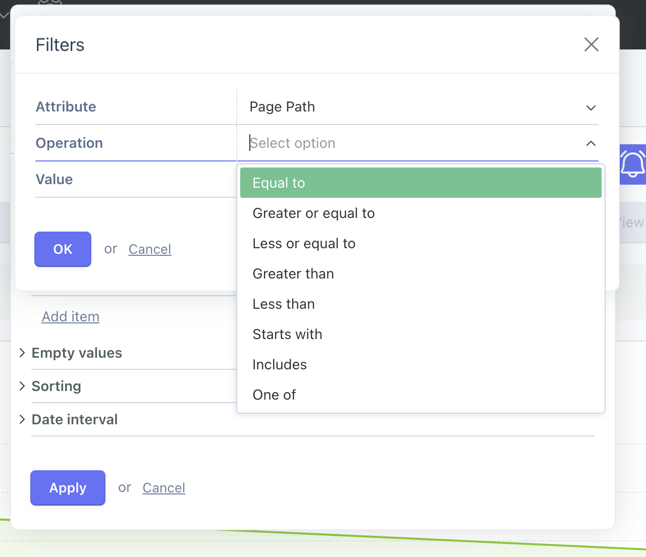 But I can’t find a way to filter out / exclude the page path I am not interested in in the stats such as the login page. Is it possible to add a opertor such as is different from that would solve my issue ?